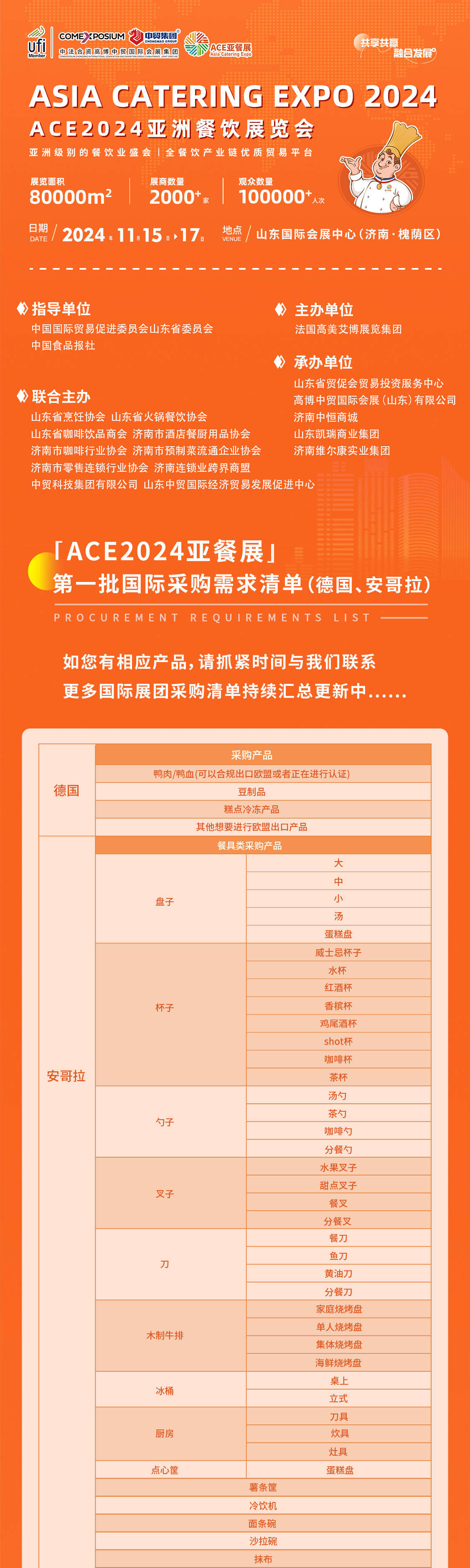 11月15-17日,ACE2024亞餐展將在山東國(guó)際會(huì)展中心(濟(jì)南市槐蔭區(qū))盛大舉辦。如您有拓展國(guó)內(nèi)外餐飲市場(chǎng)或者參觀選品的計(jì)劃,可在評(píng)論區(qū)留言或致電:0531-82350000 0551-67102222咨詢(xún)。