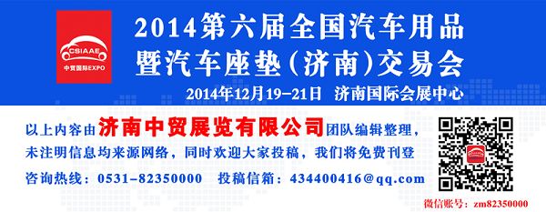 2014年為期三天的第六屆全國(guó)汽車用品暨汽車座墊(濟(jì)南)交易會(huì)將于12月19日在濟(jì)南國(guó)際會(huì)展中心隆重舉行。展會(huì)是由濟(jì)南市人民政府、陽(yáng)谷縣人民政府、中貿(mào)國(guó)際主辦,由山東省濟(jì)南汽車用品商會(huì),濟(jì)南市貿(mào)促會(huì)、陽(yáng)谷縣民營(yíng)經(jīng)濟(jì)發(fā)展局、濟(jì)南中貿(mào)展覽有限公司、陽(yáng)谷縣汽車座墊行業(yè)協(xié)會(huì)聯(lián)合承辦的集汽車座墊、腳墊、把套、汽車裝飾、汽車美容養(yǎng)護(hù)、太陽(yáng)膜、防爆膜、電子影音設(shè)備以及汽修汽保、連鎖加盟服務(wù)于一體的全國(guó)性大型綜合展會(huì)。此次展會(huì)展出面積達(dá)到5萬(wàn)多平米,共計(jì)展位2000多個(gè),其以“創(chuàng)新—必由之路,品牌-勢(shì)在必行”的辦展宗旨,憑借獨(dú)特的創(chuàng)意,科學(xué)的組織管理和卓越的服務(wù),以全新的理念為廣大汽車用品參展商提供一個(gè)“專業(yè)化、國(guó)際化、品牌化”的展示交流平臺(tái),為中國(guó)汽車用品行業(yè)提供更多的合作機(jī)會(huì),是有力推動(dòng)中國(guó)汽車用品眾多廠商開拓市場(chǎng),展示產(chǎn)品必不可少的展會(huì)。