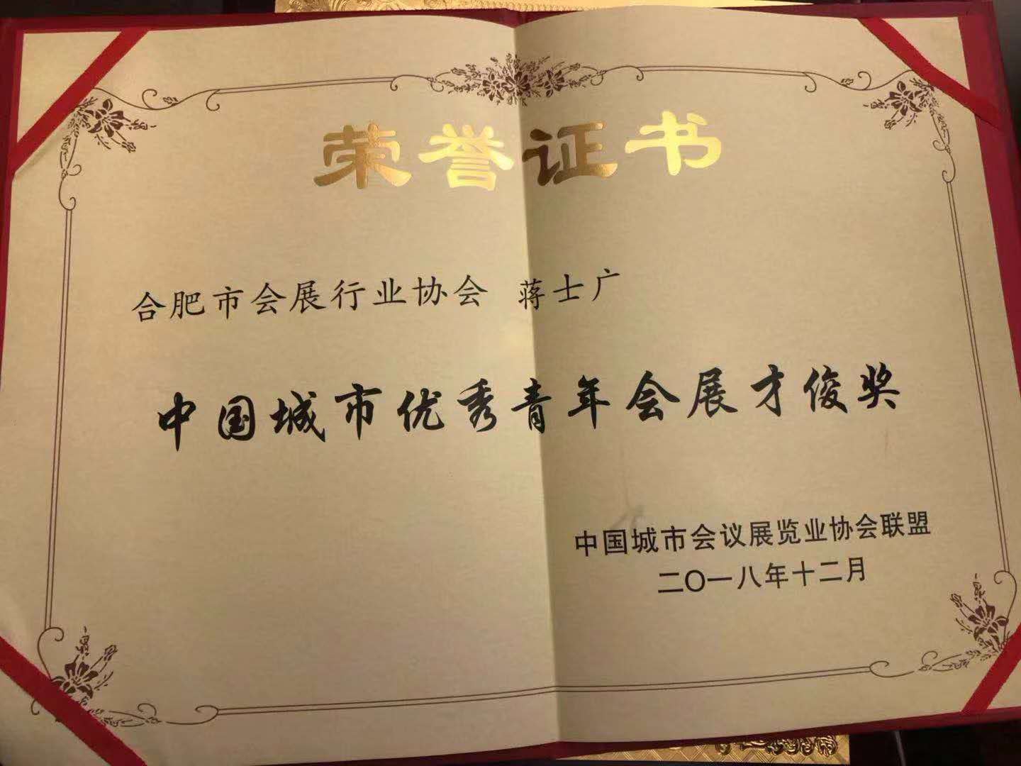中國城市優(yōu)秀青年會(huì)展才俊獎(jiǎng)