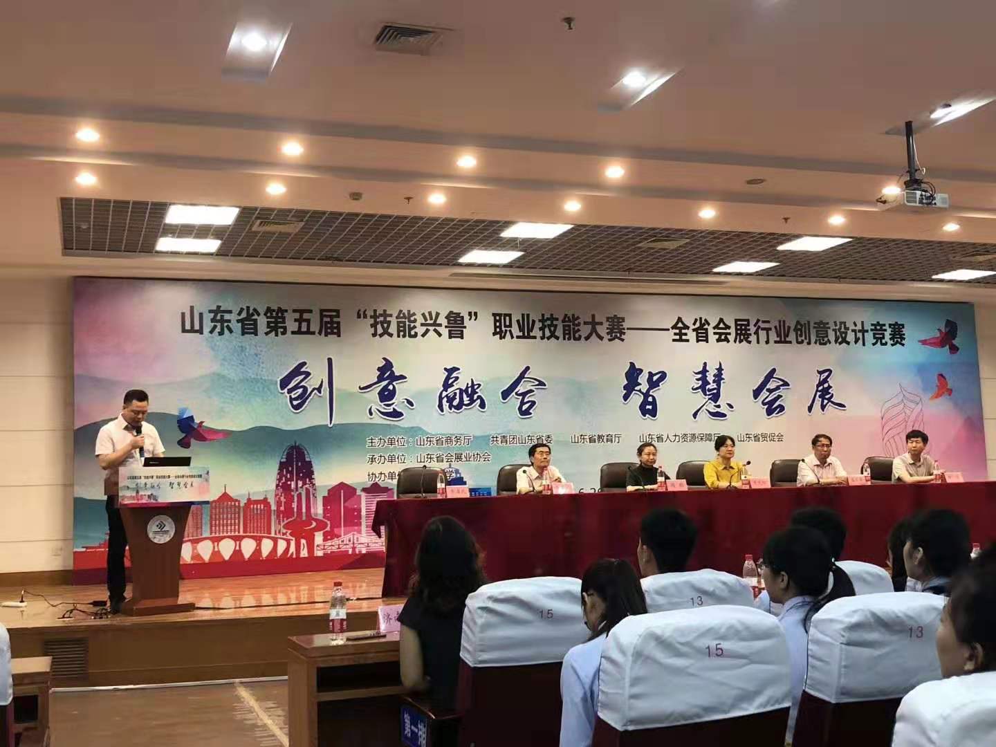 2019年6月27日上午由山東省商務(wù)廳,共青團(tuán)山東省委,山東省教育廳,山東省人力資源保障廳,山東省貿(mào)促會(huì)共同主辦,山東省會(huì)展業(yè)協(xié)會(huì)承辦,濟(jì)南大學(xué)協(xié)辦的“2019山東省第五屆“技能興魯”職業(yè)技能大賽-全省會(huì)展行業(yè)創(chuàng)意設(shè)計(jì)競(jìng)賽”在濟(jì)南大學(xué)隆重開(kāi)幕,山東省眾多高校參賽,來(lái)自山東省商務(wù)廳、山東省教育廳、共青團(tuán)山東省委、山東省貿(mào)促會(huì)等單位領(lǐng)導(dǎo)出席,中貿(mào)集團(tuán)杜磊董事長(zhǎng)代表專(zhuān)家評(píng)委講話。